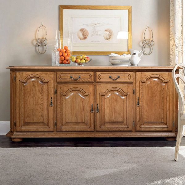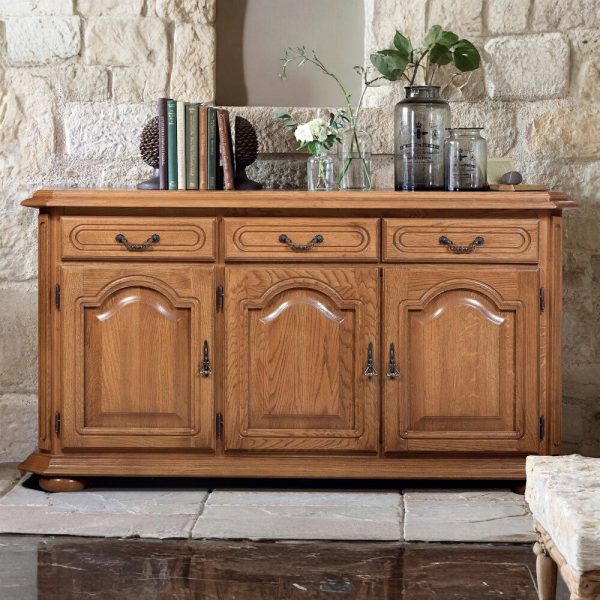 Komoda „Jana“ je elegantna i rustična, sa lepim linijama i frontovima od punog drveta hrasta. Radi se u velikom izboru boja tako da je lako uklopiva u svaki prostor, što je čini idealnom za Vašu trpezariju.
