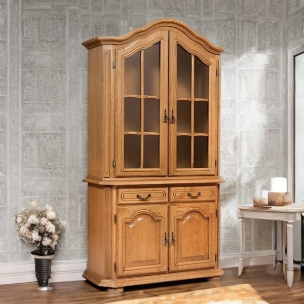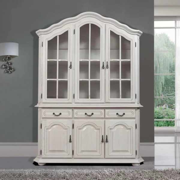 Vitrina „Jana“ je elegantna i rustična, sa lepim linijama i frontovima od punog drveta hrasta. Radi se u velikom izboru boja tako da je lako uklopiva u svaki prostor, što je čini idealnom za Vašu trpezariju.