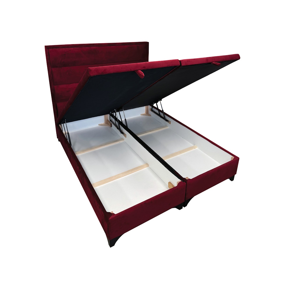 Za dimenzije 90×200, 120×200 ide jedna kutija+uzglavlje. Za dimenzije 140×200, 160×200, 180×200 idu dve kutije+uzglavlje.