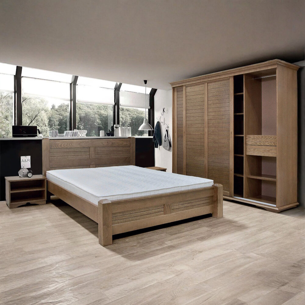 Spavaća soba „Verona“ sa frontovima od punog drveta kvalitetnog hrasta je elegantna i moderna spavaća soba koja će uneti toplinu i prirodnu lepotu u vaš dom. Hrast je poznat po svojoj čvrstoći, trajnosti i bogatoj teksturi, što ga čini idealnim materijalom za nameštaj. Frontovi od hrasta će spavaćoj sobi Verona dati sofisticiran i luksuzan izgled.