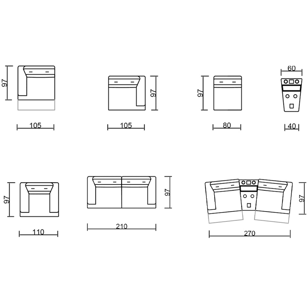 Istaknuta cena je za sastav: jednosed sa mehanizmom sa rukonaslonom + konzola + jednosed sa mehanizmom sa rukonaslonom. Dimenzije 270x97x117.