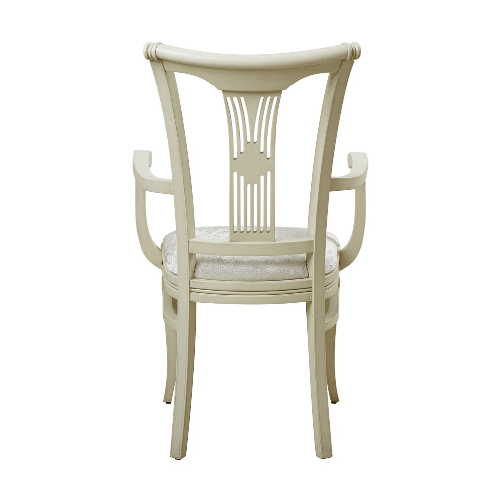 Trpezarijska stolica koja donosi moderan obrt u tradicionalnoj trpezariji. Odlikuju je isprepletene linije naslona i konstrukcija od punog bukovog drveta.