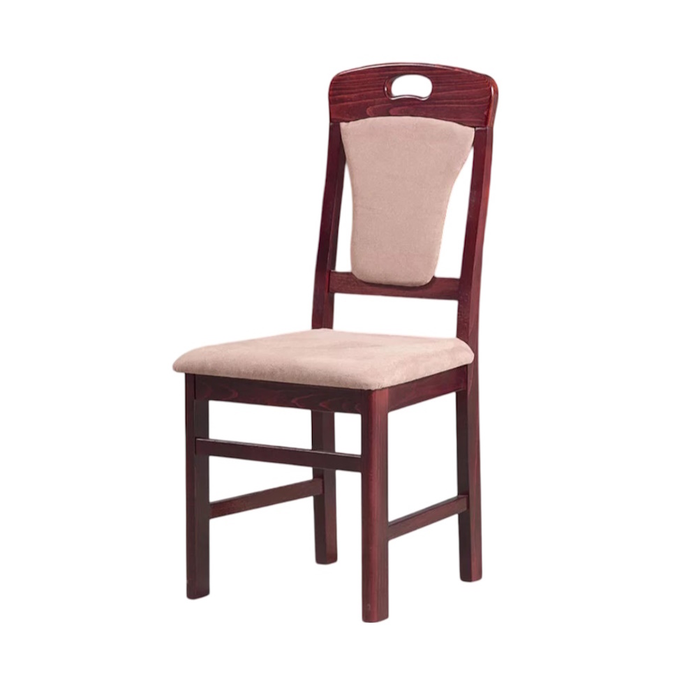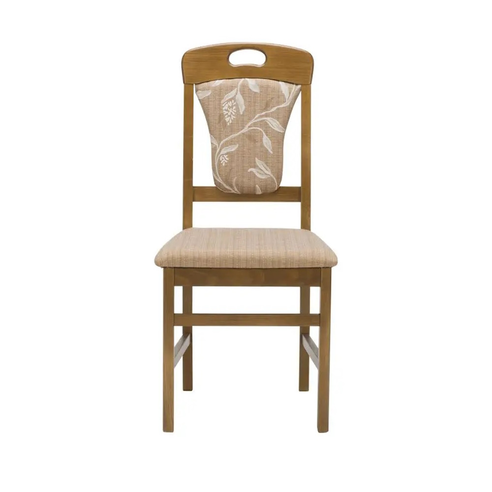 Trpezarijska stolica „Rajna“ odiše elegancijom i veoma je uklopljiva za vaš dom jer Vi imate mogućnost da birate štof i boju drveta.