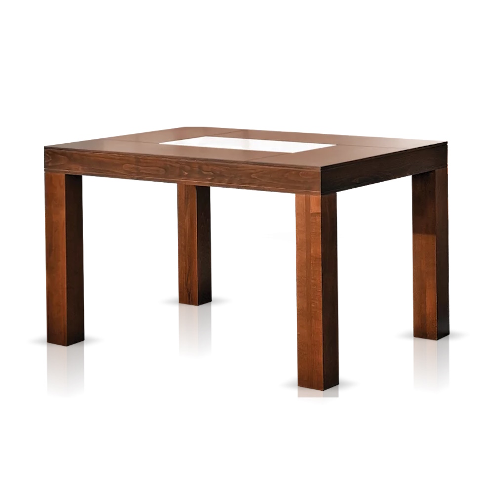Trpezarijski sto „Atina“ je čvrst i elegantan trpezarijski sto fiksnih dimenzija. Izrađen je od bukovog masiva i furniranog MDF-a.