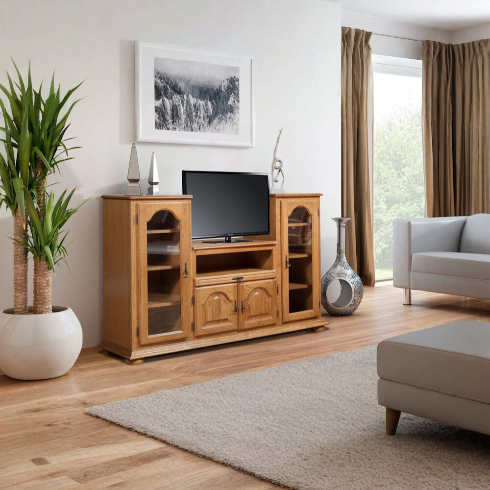 TV komoda „Grand“ je rustičan komad nameštaja napravljen od punog drveta hrasta. Karakteriše je prostrana površina za TV i police za odlaganje. Izrađena je od kvalitetnih materijala, što joj osigurava dugotrajnost.
