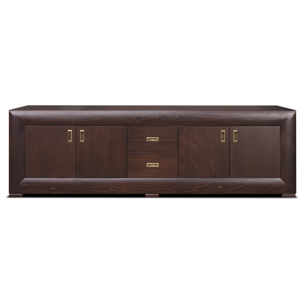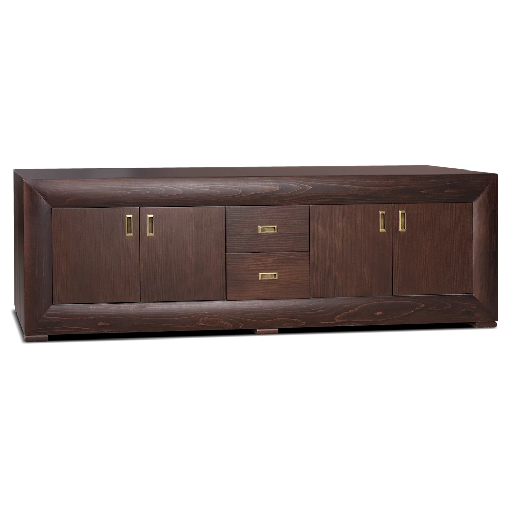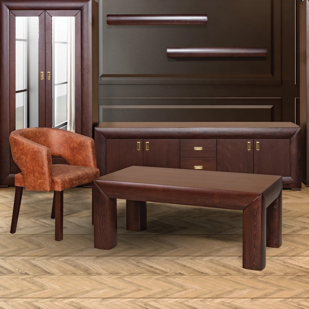 TV komoda „Leon“ sa krilima modernog dizajna i integrisanim ručicama, izrađena u kombinaciji masiva i medijapana, veliki izbor dezena po Vašem izboru.