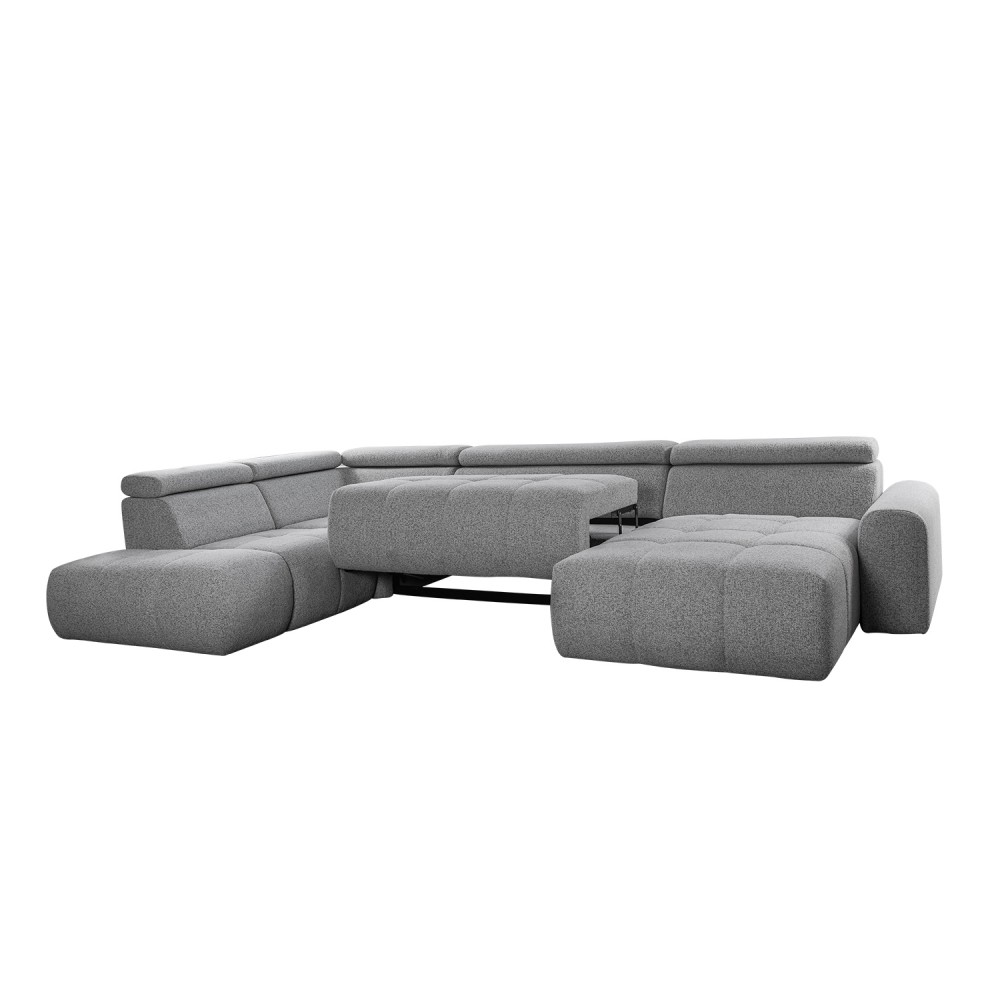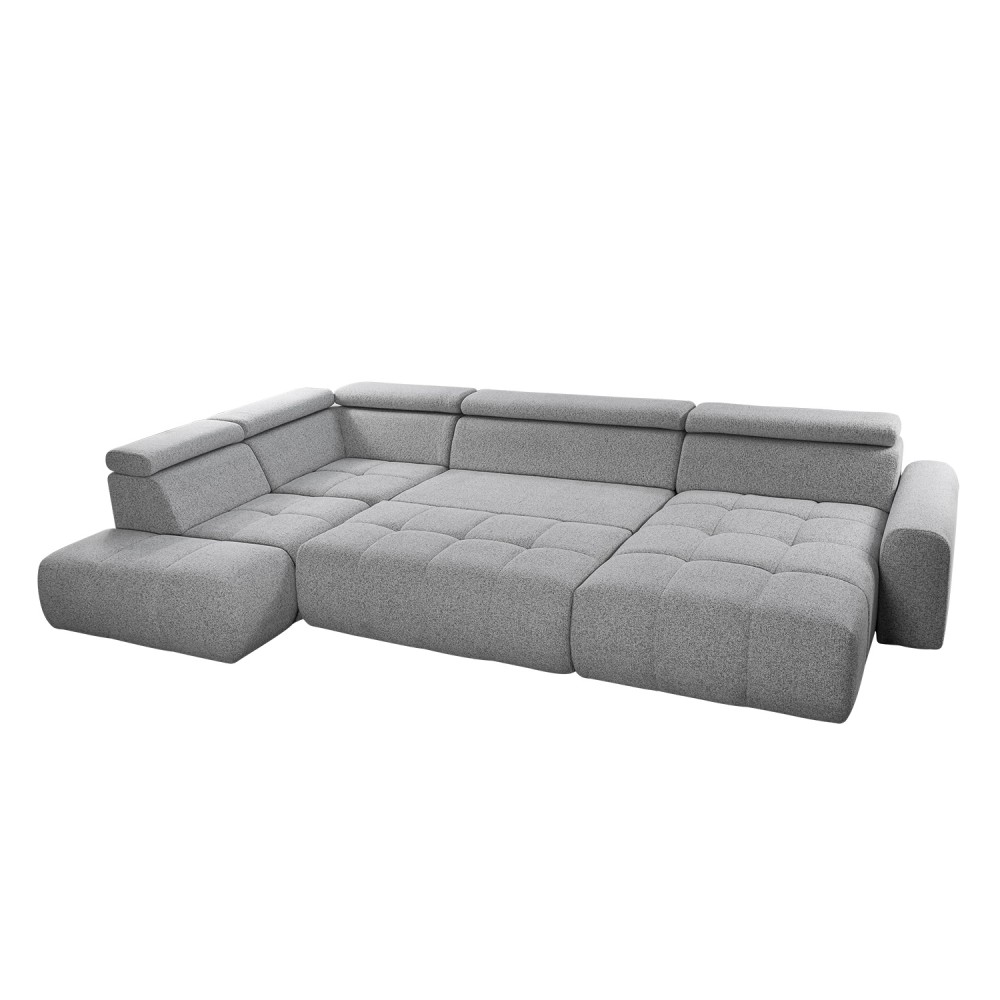 Ugaona garnitura „Atlantik“ je udobna garnitura sa kvadratnim štepovima, pravi izbor za moderno uređen dom. Variranjem visine glavonaslona možeš podesiti ukupnu visinu prema svojoj želji. Pretvaranjem u ležaj dobija se prostor dovoljan i za ekstra visoku osobu.