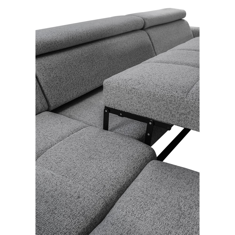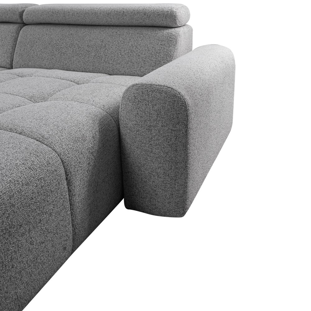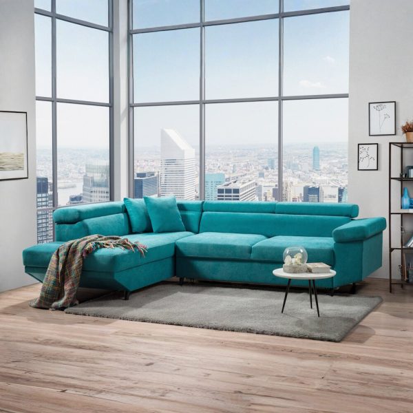 Dodatne informacije: val opruga, visoko elastična HR pena, lako konvertibilan u prostran ležaj, prostor za odlaganje, izbor ugla levo/desno, izbor štofa, podešavajući glavonasloni.