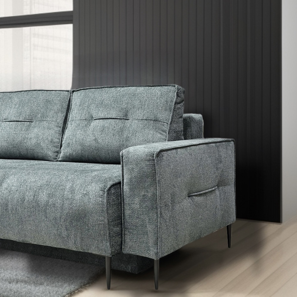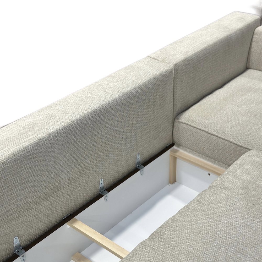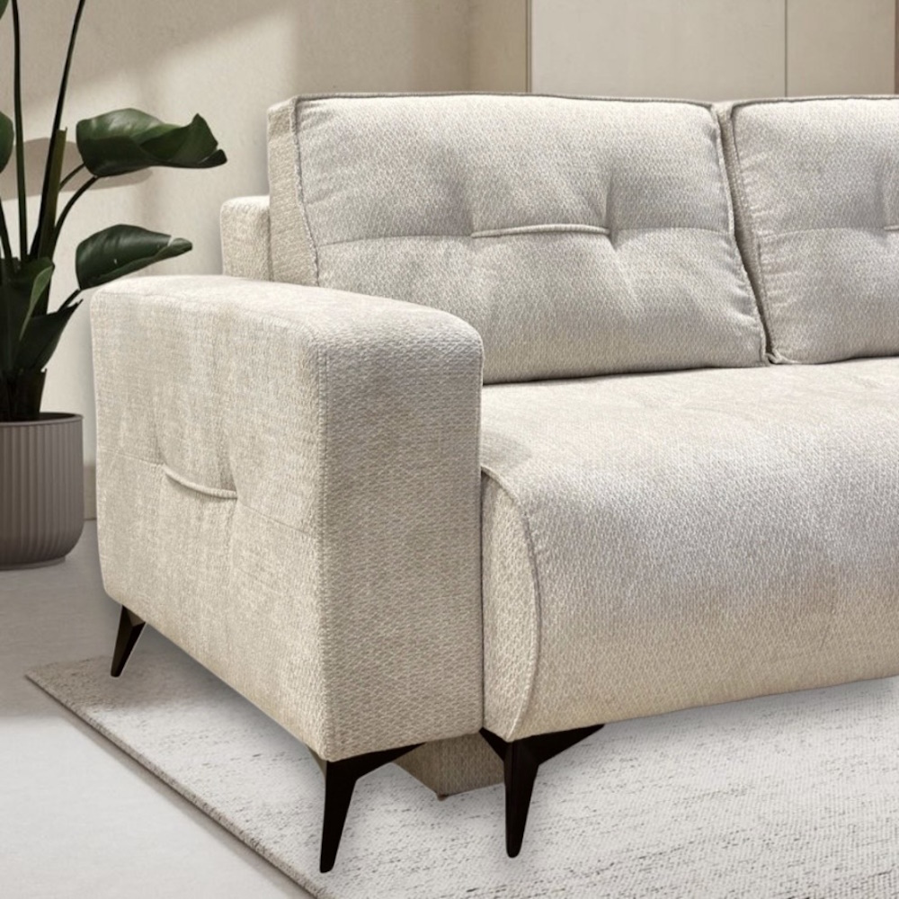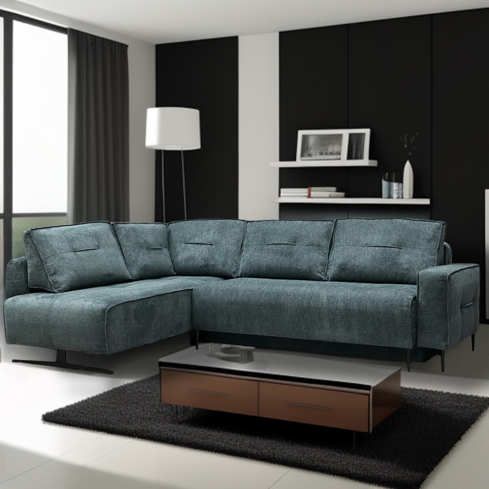 Dodatne informacije: žičano jezgro, lako konvertibilan u prostran ležaj, prostor za odlganje, izbor ugla levo/desno, izbor štofa.
