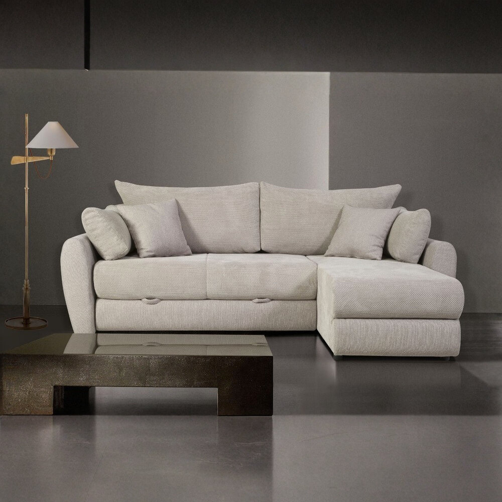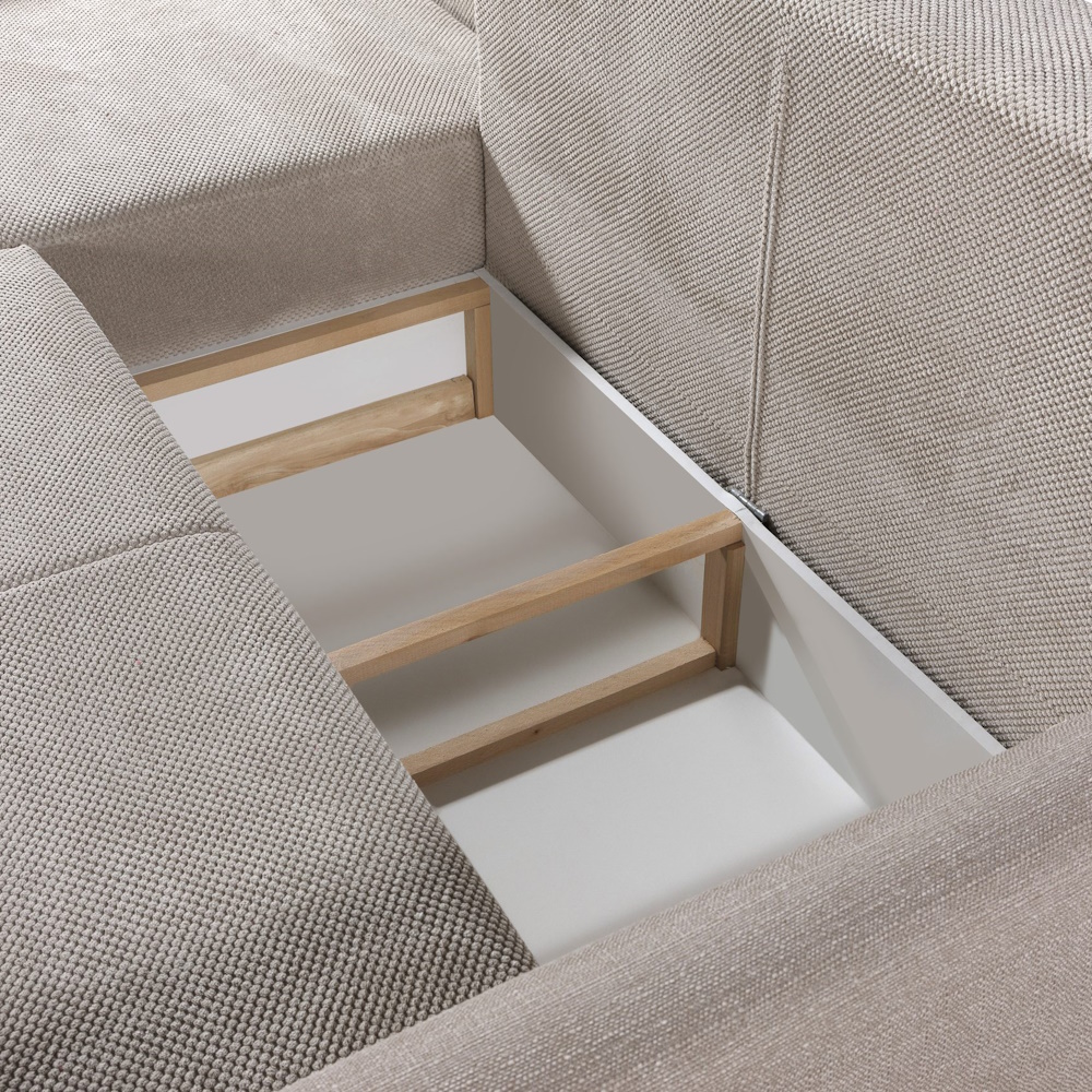 Dodatne informacije: žičano jezgro, lako konvertibilan u prostran ležaj, prostor za odlaganje, izbor ugla levo/desno, izbor štofa.