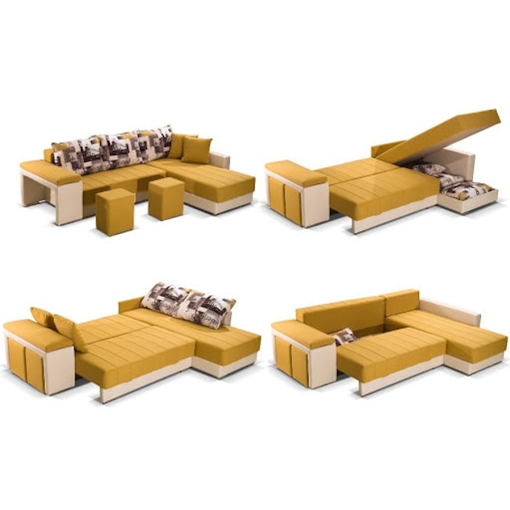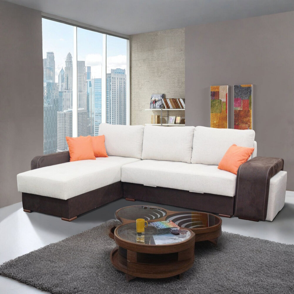 Dodatne informacije: žičano jezgro, lako konvertibilan u prostran ležaj, prostor za odlganje, izbor ugla levo/desno, izbor štofa.