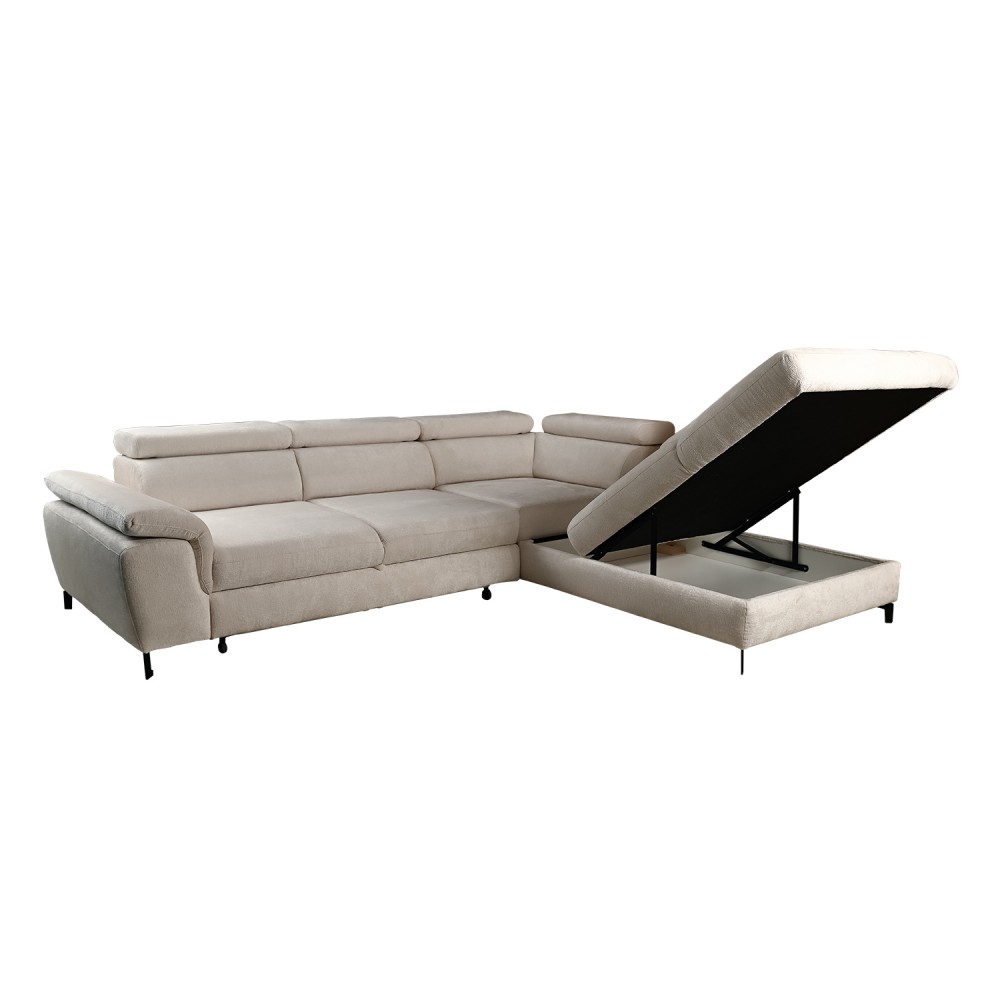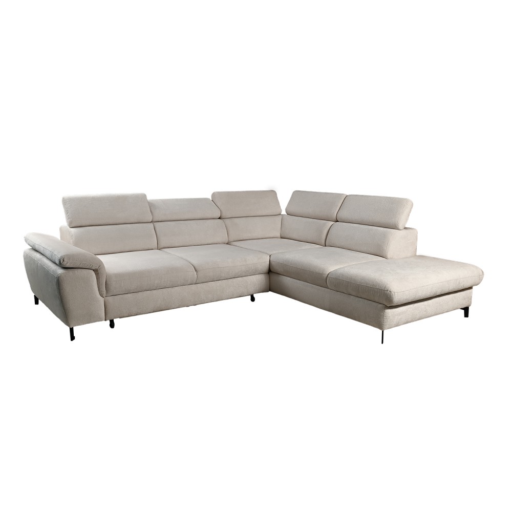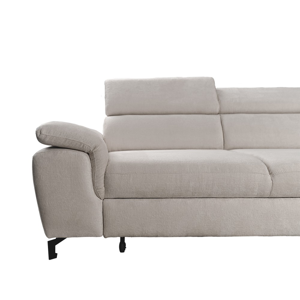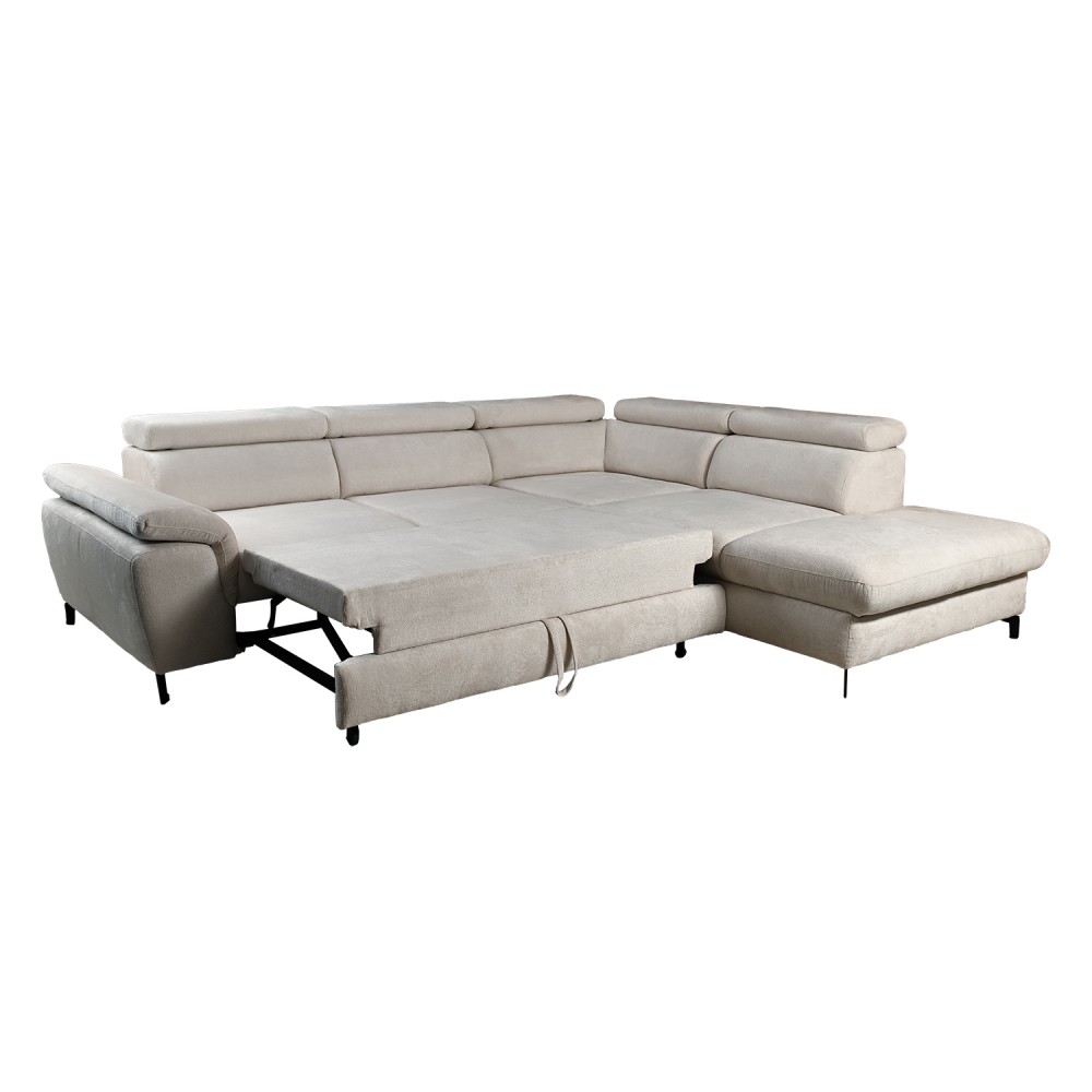 Ugaona garnitura „Scarlet“ je elegantna garnitura sa zaobljenim ivicama i glavonaslonima koje možeš prilagoditi svojim potrebama. Pretvaranjem u ležaj dobija se površina dovoljna i za ekstra visoke osobe.