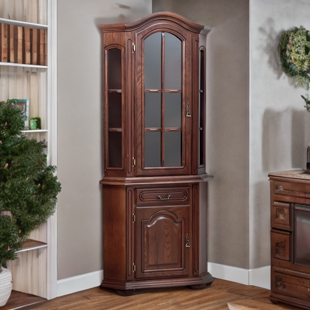 Vitrina „Jana“ je elegantna i rustična, sa lepim linijama i frontovima od punog drveta hrasta. Radi se u velikom izboru boja tako da je lako uklopiva u svaki prostor, što je čini idealnom za Vašu trpezariju.